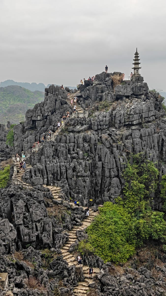 The day ended with the Mua Cave hike. Nearly 500 steps led us to the famous Lying Dragon viewpoint, offering a panoramic view of Tam Coc that looked like a painting.